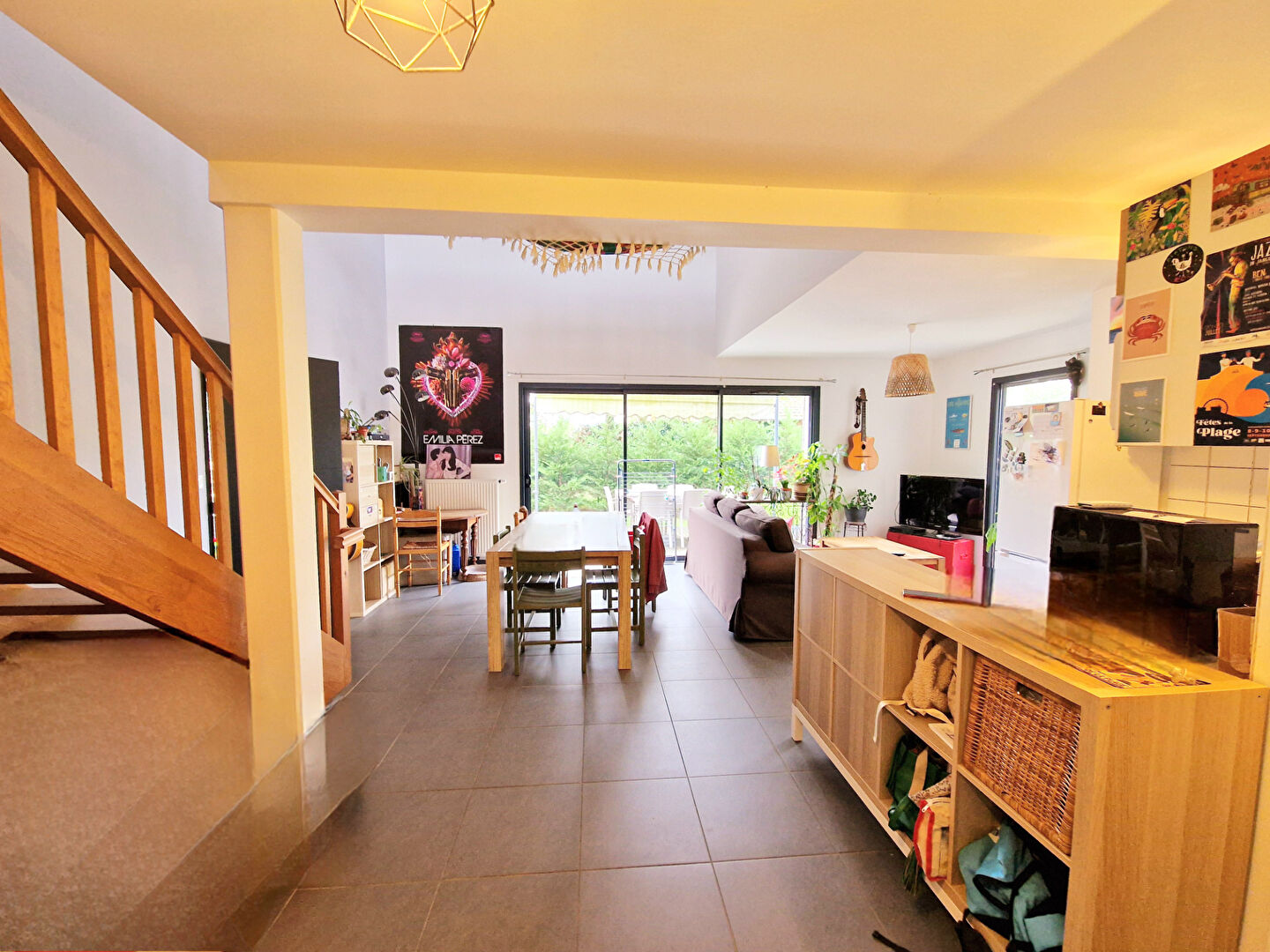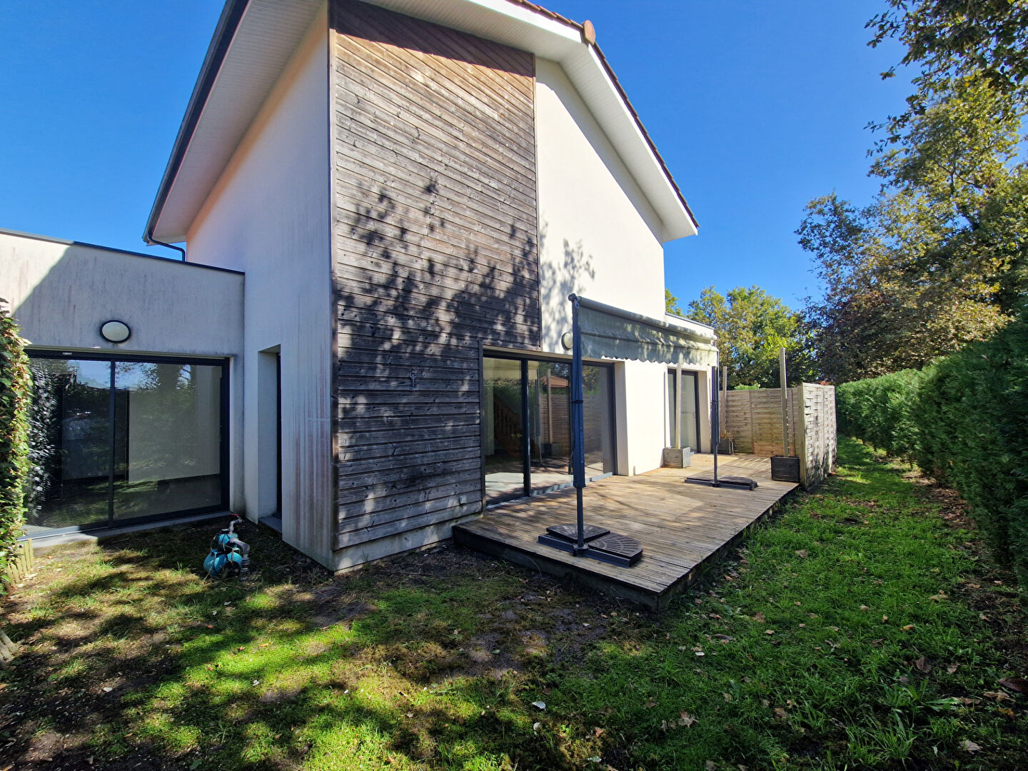 Belle maison de 112 m² proche du centre dans un secteur calme et agréable. Elle se compose d'une entrée avec rangement, un vaste séjour cuisine aménagée. 3 chambres, 1 salle de bains et une salle d'eau avec WC, un WC indépendant. Une grande mezzanine surplombant le séjour. L'extérieur dispose d'une belle terrasse bois et d'un bel espace verdoyant.Un garage et possibilité 3 places de parking.