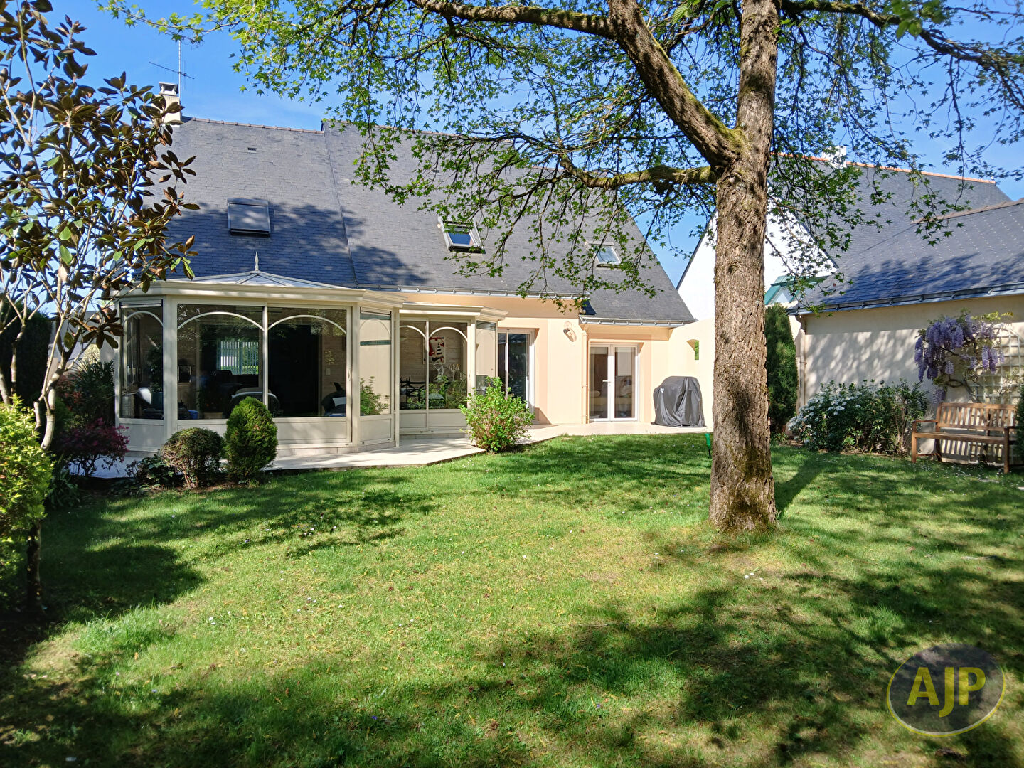 Nouveau! A proximité du centre de Blain, sur son agréable jardin arboré et sans vis à vis, venez visiter cette maison spacieuse ( environ 150 m²) et lumineuse: Au rez-de-chaussée: entrée, salon séjour avec cheminée, véranda, cuisine AetE, chambre avec salle d'eau, bureau, buanderie, WC.A l'étage: 3 chambres, salle de bains, WC et un grenier aménageable d'environ 13 m².Grand garage d'environ 36 m², terrasse, jardin clos avec portail électrique. DPE: C Réf: 3848SL. (5.36 % honoraires TTC à la charge de l'acquéreur.)