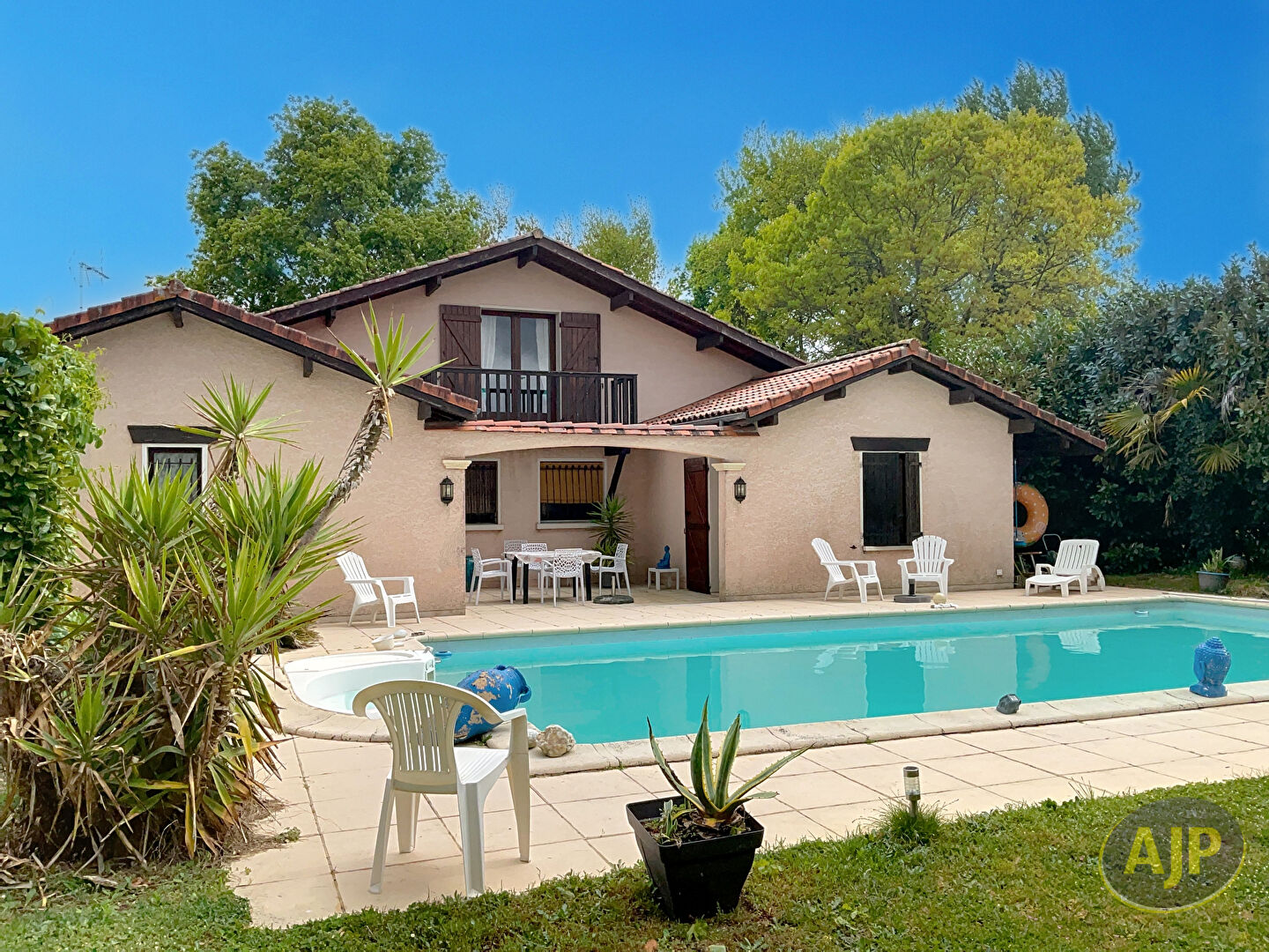 AJP Castelnau Immobilier vous propose cette charmante maison landaise idéalement située sur la commune d'Eysines, à la limite du centre d'entraînement des Girondins de Bordeaux, sur la commune voisine du Haillan.Nichée dans un environnement calme et verdoyant, cette propriété offre un cadre de vie paisible, parfait pour une famille en quête de sérénité tout en restant proche des commodités et de la voie rapide.Elle se compose d'un grand séjour lumineux, idéal pour recevoir, d'une cuisine fermée bien aménagée, et d'un spacieux cellier/buanderie très pratique pour le rangement.Un ancien garage a été transformé avec une douche et des toilettes : il peut facilement devenir une quatrième chambre ou un studio indépendant, selon vos besoins.Côté nuit, la maison dispose de trois chambres confortables, d'une mezzanine pouvant servir de bureau ou de coin nuit, ainsi que de deux salles d'eau (une à chaque niveau).Le tout repose sur un beau terrain arboré, agrémenté de 4 terrasses entourant la maison ? parfaites pour les repas en plein air ? et d'une piscine pour profiter pleinement des beaux jours en toute intimité.Un véritable havre de paix, aux portes de Bordeaux et à deux pas du centre d'entraînement des Girondins, à découvrir sans tarder !Pour plus d'informations ou visites, contactez Damien Saint-gérard au 06.61.07.21.35. (5.30 % honoraires TTC à la charge de l'acquéreur.)