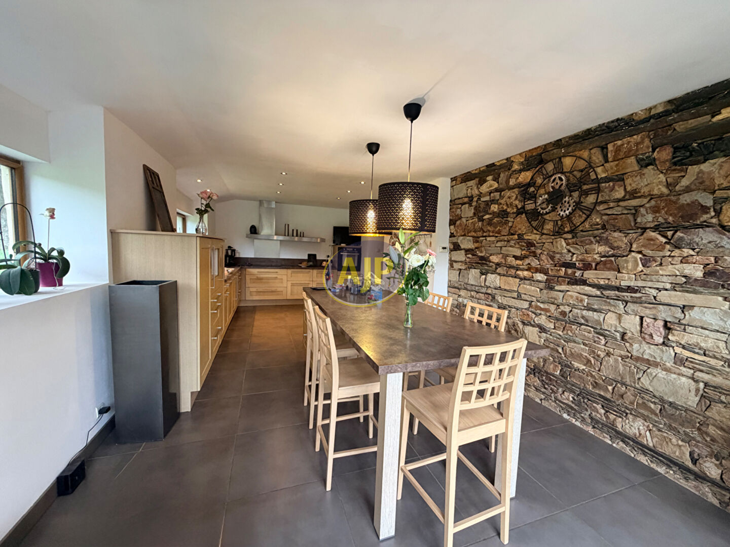 Charme et authenticité pour cette longère en pierre !Nichée dans un environnement calme et verdoyant, cette magnifique longère en pierre couverte en ardoises naturelles saura vous séduire par son caractère et ses beaux volumes.Au rez-de-chaussée, vous découvrirez un hall d'entrée, une belle pièce de vie lumineuse et chaleureuse avec cheminée insert idéale pour partager des moments conviviaux, ainsi qu'une cuisine dînatoire aménagée/équipée avec son îlot central et poêle à bois . Une chambre parentale avec dressing, une salle de bains avec douche, buanderie/lingerie, WC , une pièce utile et 3 terrasses en enfilade.A l'étage, une mezzanine qui dessert quatre chambres, une salle de bains et un WC séparé.Un garage attenant vient compléter ce bien.Implantée sur un terrain de 2 ha 21 a 82 ca, cette propriété offre un cadre idéal ! Assainissement conforme. Une propriété pleine de charme, rare sur le marché, à découvrir sans tarder ! (3.66 % honoraires TTC à la charge de l'acquéreur.)