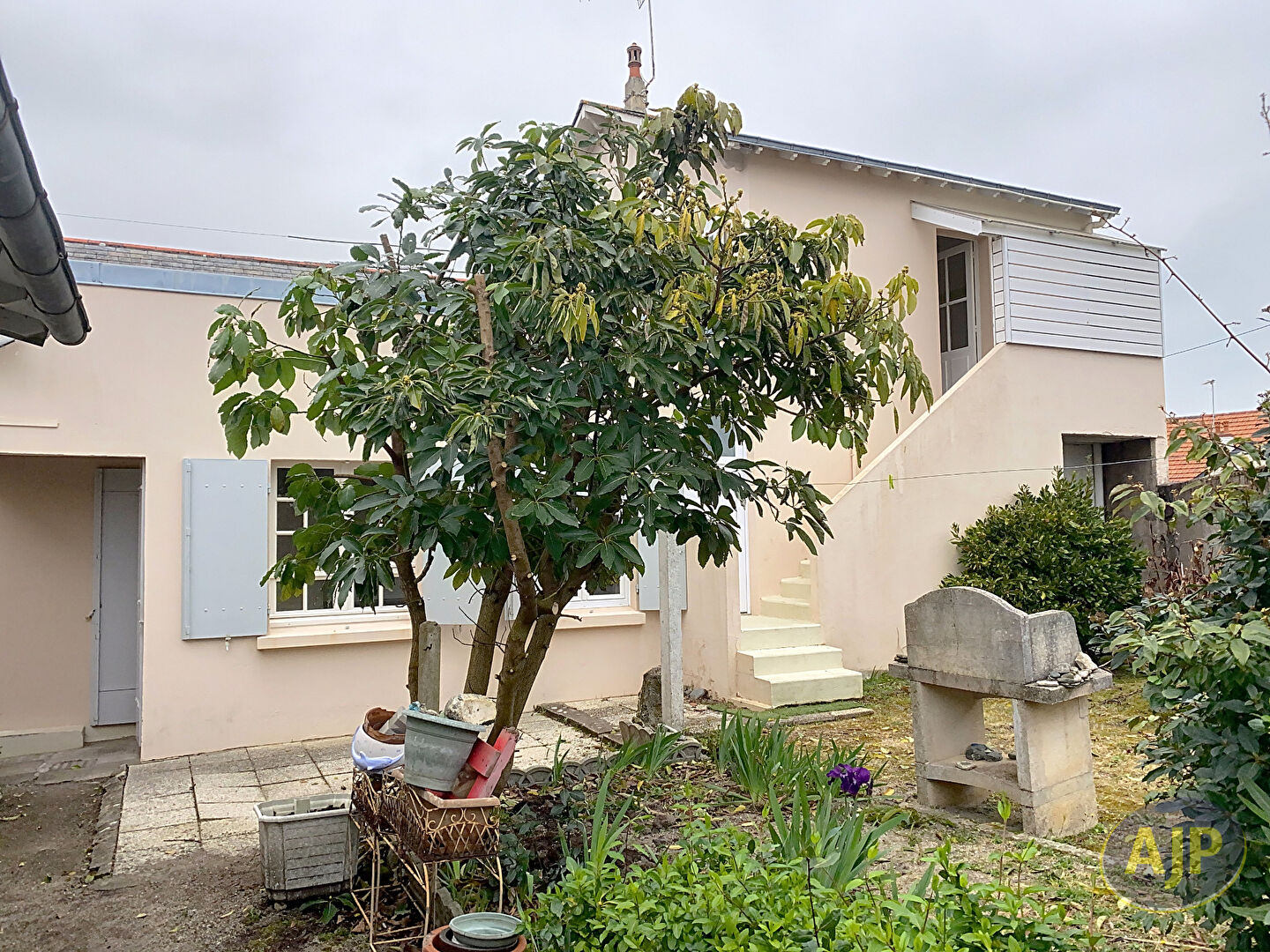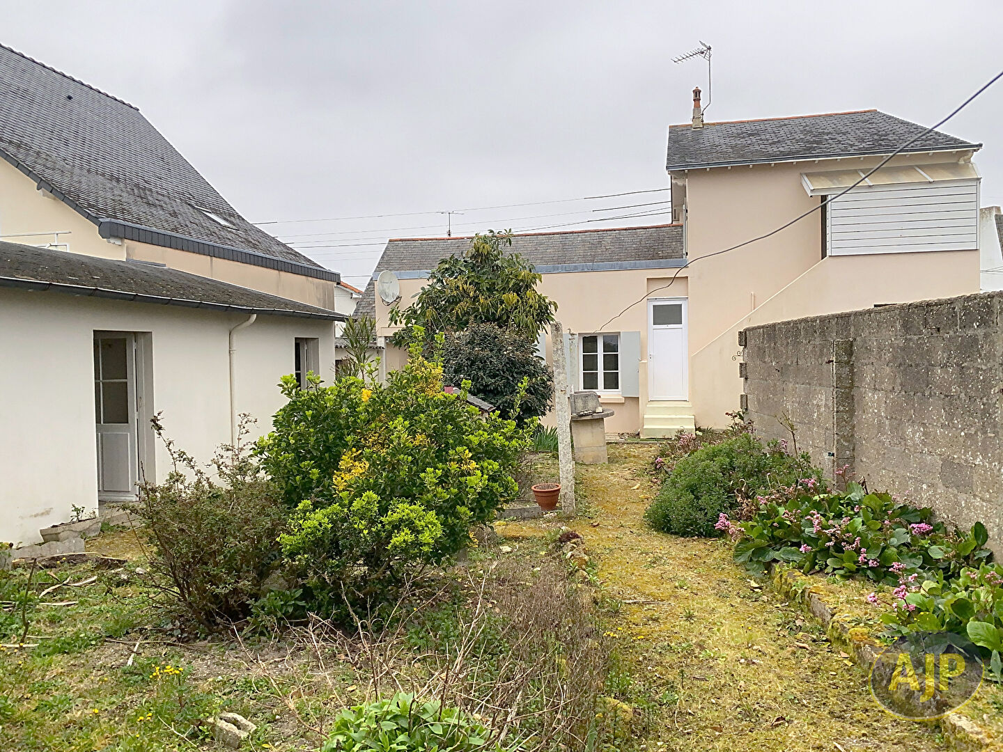 LE POULIGUEN A proximité du centre ville et des commerces à pieds, charmante maison de ville des années 30 avec jardin clos de murs comprenant : une entrée, une pièce de vie avec belle hauteur sous plafond, deux chambres sur parquet dont une de plain-pied, une cuisine donnant sur jardin exposé SUD OUEST, une salle d'eau, un cabinet de toilettes, un garage et plusieurs dépendances pouvant être aménagées en pièces de vie..Très belles possibilités d'agrandissement....Situation prisée à 10 mn à pieds de la plage et des commerces... (5.00 % honoraires TTC à la charge de l'acquéreur.)