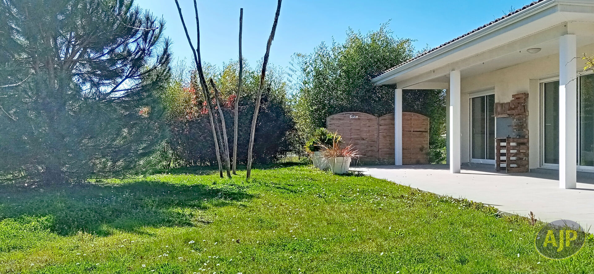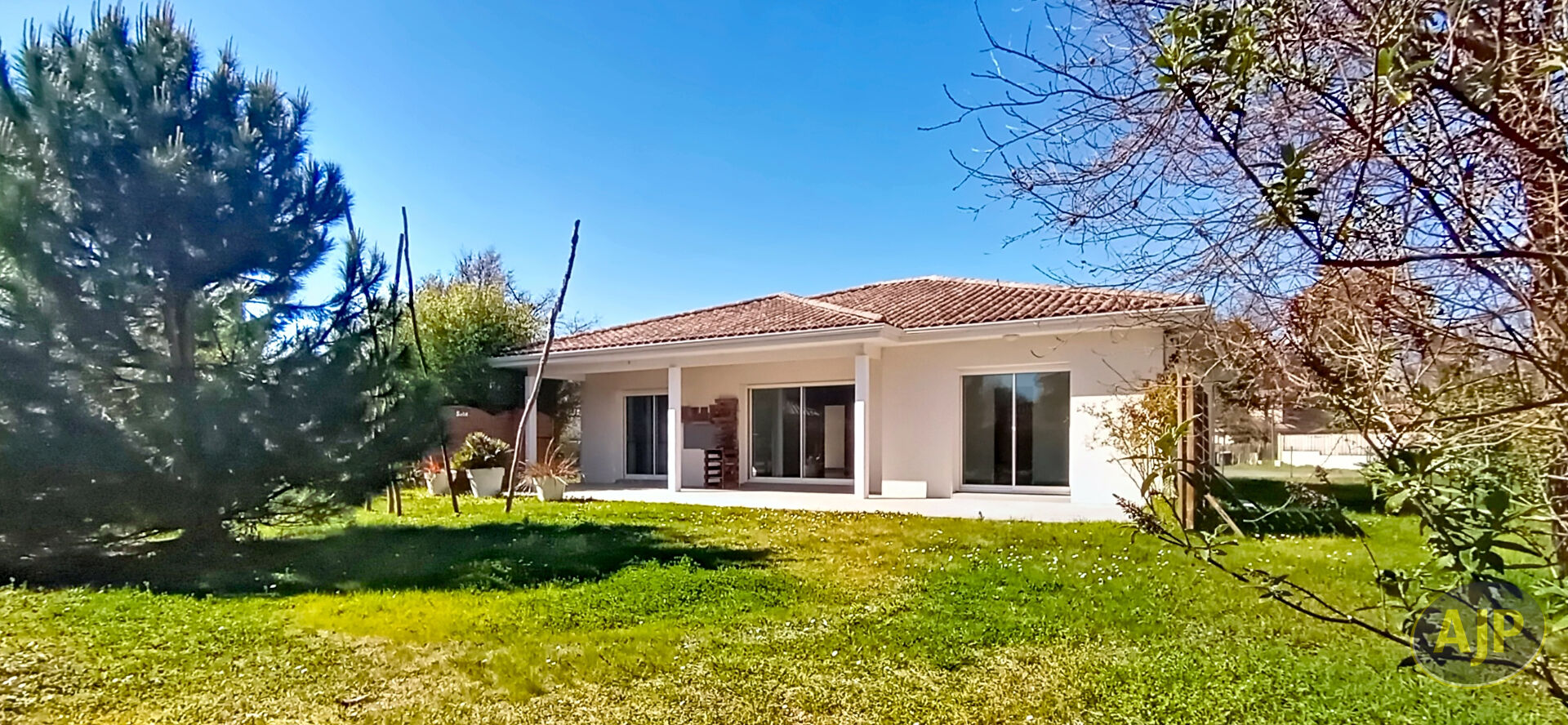 Maison contemporaine de plain pied facile à vivre et bien agencée, elle se compose d'une entrée, vaste séjour de 46 m² baigné de lumière, cuisine ouverte aménagée, une chambre parentale + salle d'eau et wc, 2 chambres avec placards, une salle d'eau, wc séparés. Un garage isolé et carrelé transformable en chambre ou bureau. Très joli terrain végétalisé de plus de 800 m² piscinable exposé Sud. Un cabanon de jardin.Infos/ visites par AJP LEGE CAP FERRET 06 34 02 59 22 (5.55 % honoraires TTC à la charge de l'acquéreur.)