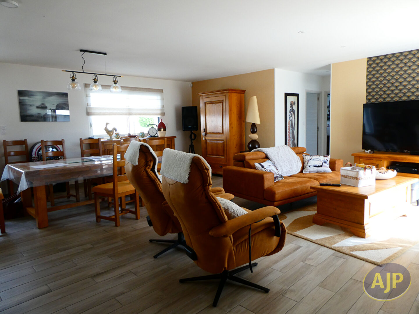 Proche du centre dynamique de la commune de Plumelec (tous commerces et commodités), cette maison d'architecte de plain pied d' une surface habitable d'environ 146m² vous offre entrée avec dressing, cuisine aménagée et équipée ouverte sur vaste salon séjour avec poêle à bois, 2 chambres et une suite parentale composée d'une belle chambre avec dressing et sa salle d'eau privative, salle d'eau, wc, cellier/buanderie, garage avec cave, abri voiture. Le tout sur un terrain clos de 626 m². (5.55 % honoraires TTC à la charge de l'acquéreur.)