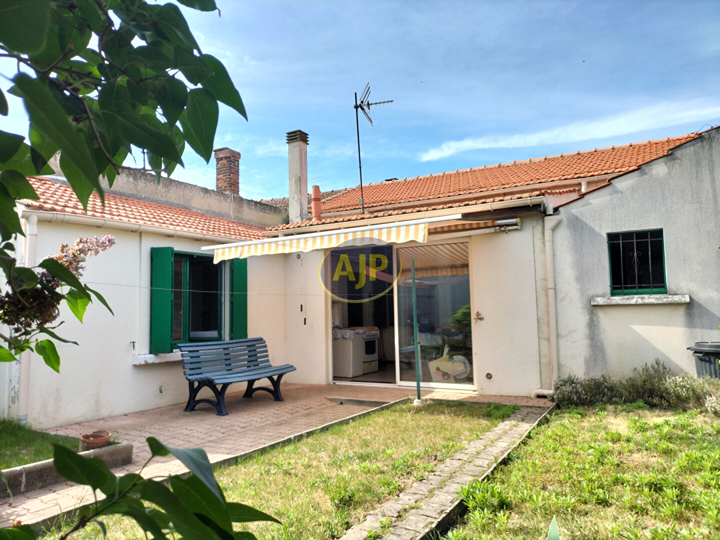 Exclusivité AJP ImmobilierMaison d'habitation de plain pied comprenant: entrée, cuisine, séjour, 2 chambres, salle de bains, wc, véranda, cellier, dépendances, jardin. (6.42 % honoraires TTC à la charge de l'acquéreur.)