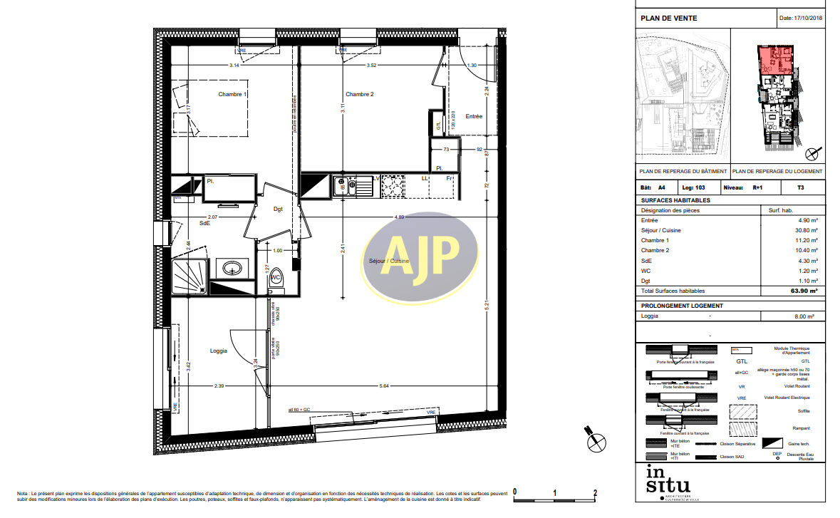 Référence 929VM - A NANTES, résidence récente CRISTO 1, nous vous proposons un appartement T3 n°A4-103 de 63,90 m² avec loggia situé au 1er étage. Il comprend une entrée avec placard, un séjour avec cuisine (meubles, plaque de cuisson et hotte), deux chambres dont une avec placard, une salle d'eau et un WC séparé. Eau froide, eau chaude et chauffage urbain, entretien parties communes et espaces verts communs, compris dans les provisions sur charges mensuelles et donnant lieu à une régularisation annuelle.GLI + Pinel