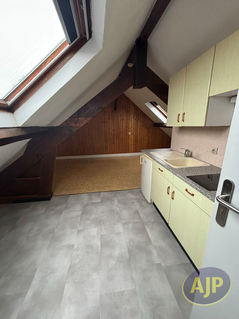 En plein centre, studio au 2ème étage, offrant une pièce principale avec coin cuisine aménagée et équipée (réfrigérateur, plaque de cuisson), salle de bains avec wc. Chauffage électrique. Disponible OCTOBRE 2025 .