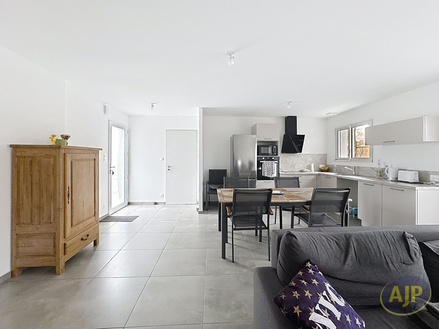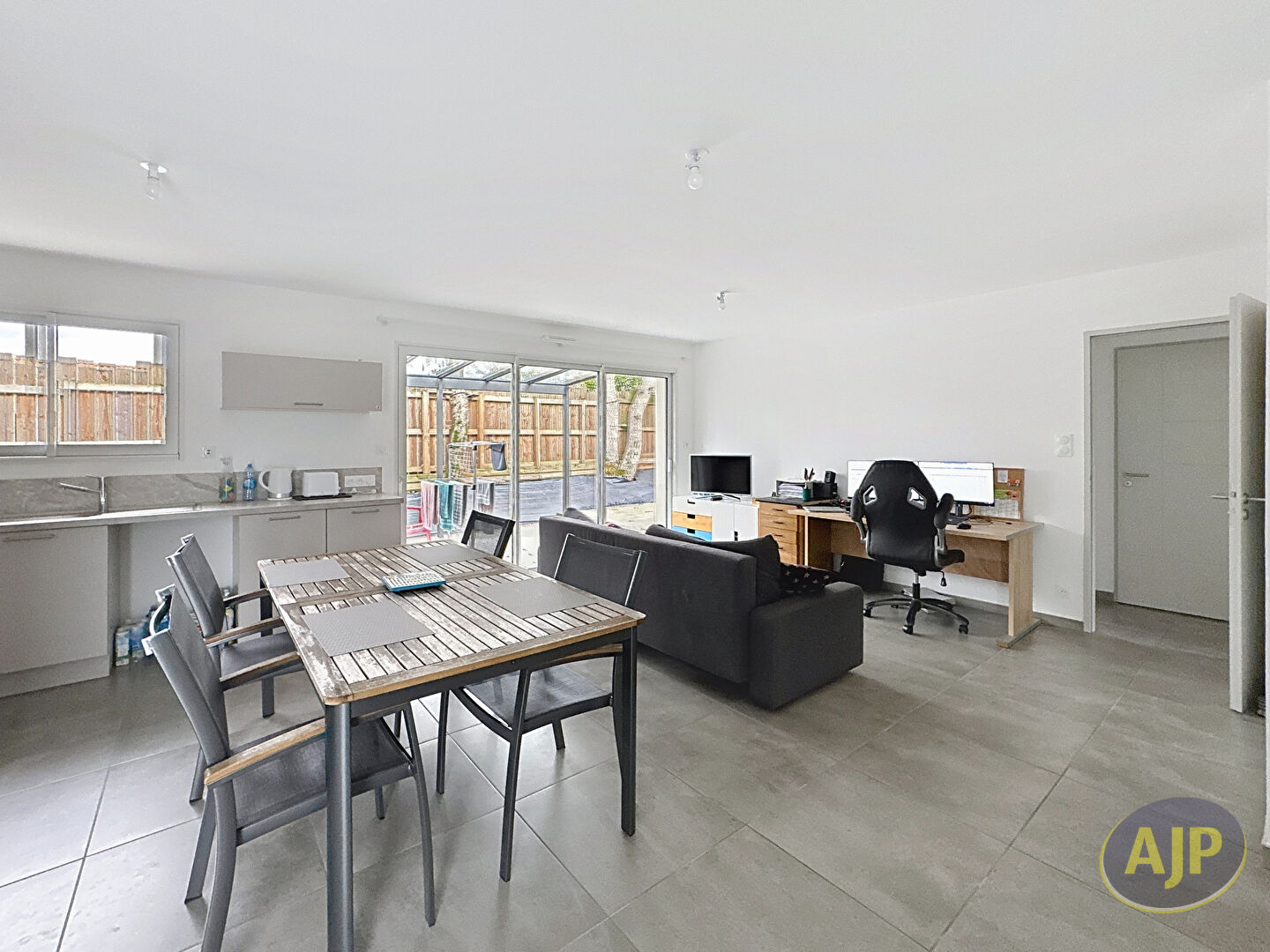 Agréable maison de plain-pied idéalement située à proximité immédiate du bourg de Vieillevigne, dans un environnement calme et pratique au quotidien.-Description du bien :Maison de plain-pied3 chambres, chacune équipée d'un placard intégréGrande pièce de vie lumineuse avec cuisine aménagée et équipée (hotte, plaque, four)Salles d'eau Terrasse donnant sur l'extérieurGarage attenant- Atouts :Emplacement recherché, proche des commerces, écoles et servicesMaison fonctionnelle et confortableQuartier calme